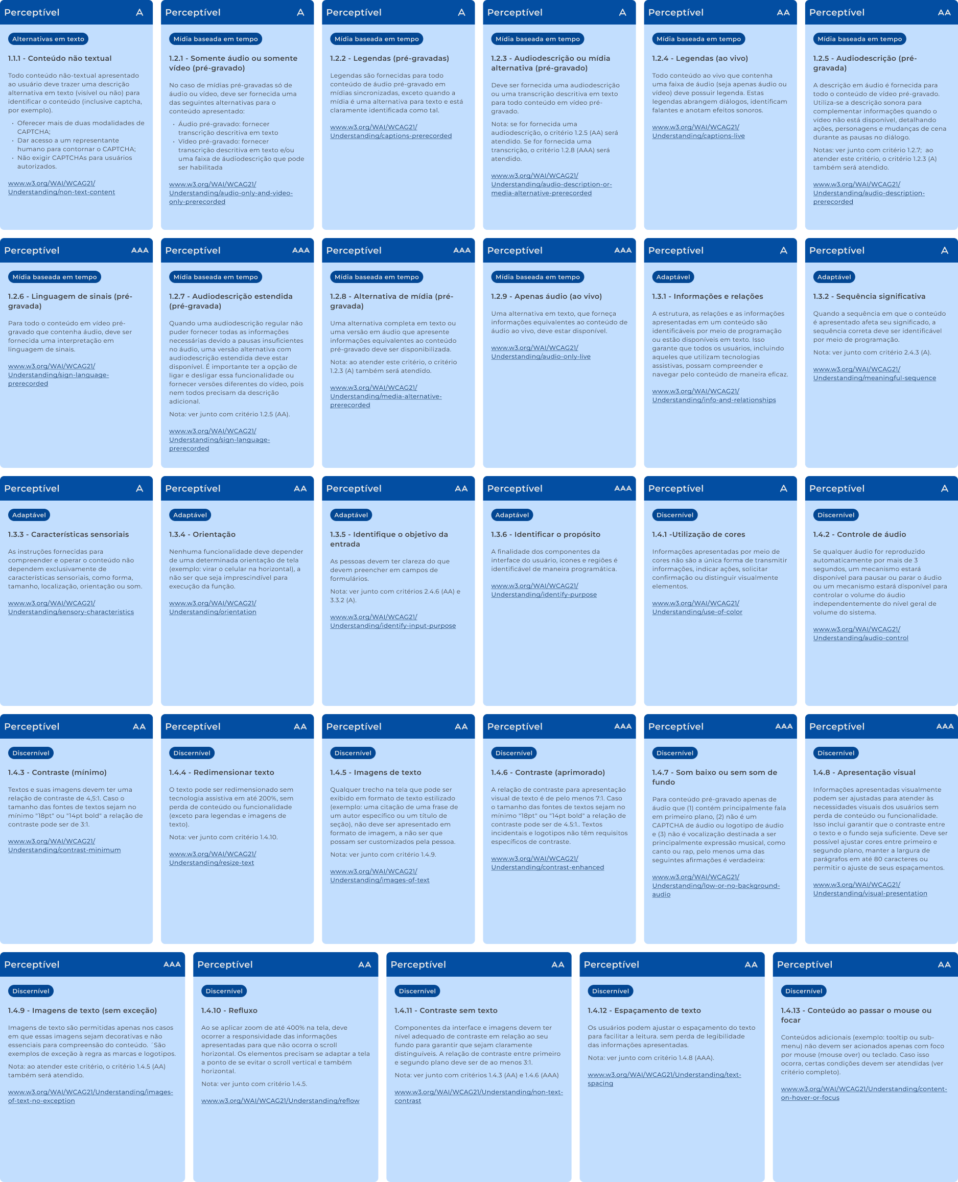 Os critérios abaixo garantem que o conteúdo seja acessível e inclusivo: