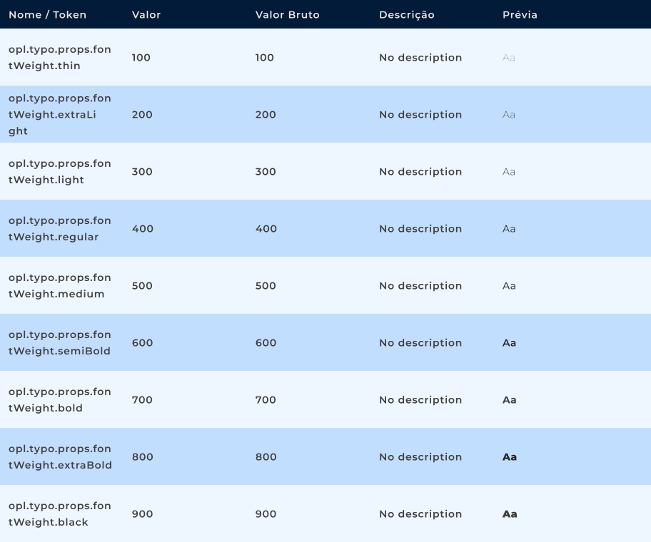 Os pesos tipográficos definem variações de espessura da fonte e ajudam a criar hierarquia visual.