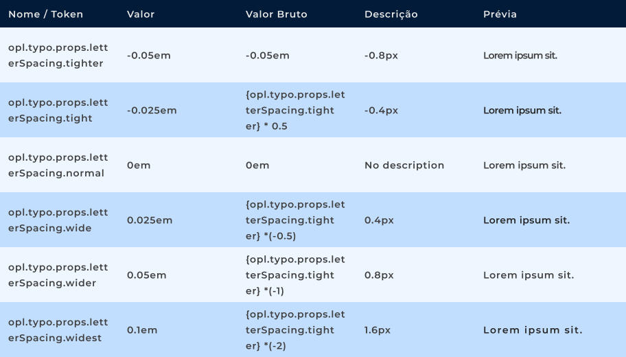 Valores consistentes garantem uma apresentação equilibrada e contribuem para a identidade tipográfica do sistema.